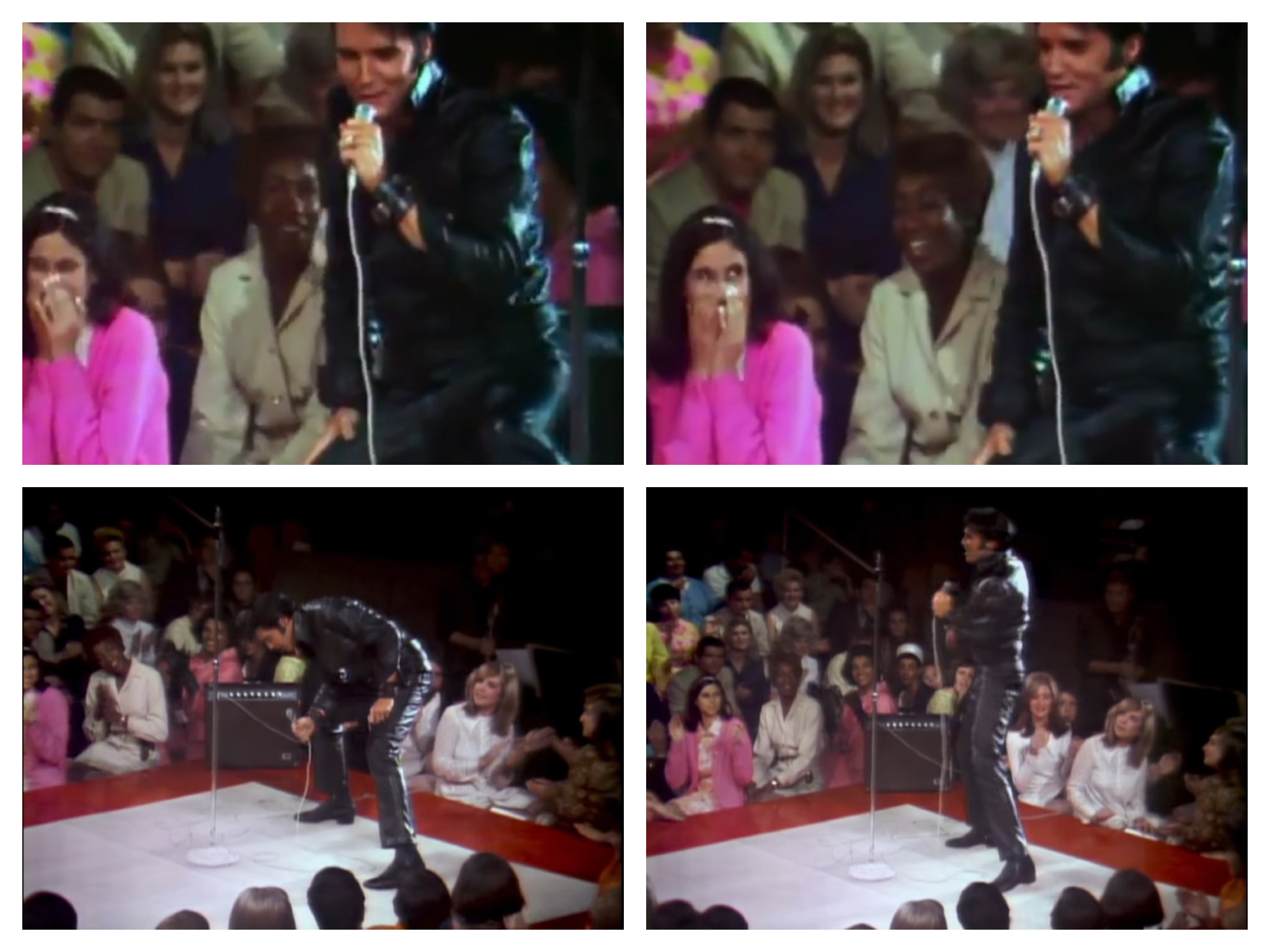 Entre centenas e centenas de shows, citarei apenas um (para não tomar muito o seu tempo): Elvis NBC TV Special ('68 Comeback Special) - considerado o primeiro Acústico (Unplugged) da história registrado em vídeo. Foi ao ar em 03/12/68, poucos meses depois da morte de Martin Luther King, portanto, no auge do racismo, e havia negros tanto no palco quanto na platéia (e na primeira fila!)