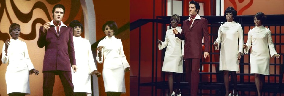 a). Dedicar uma parte do especial onde ele aparece cantando ao lado grupo vocal feminino chamado "The Blossoms", grupo que era composto por três mulheres negras (Fanita James, Jean King, Darlene Love).