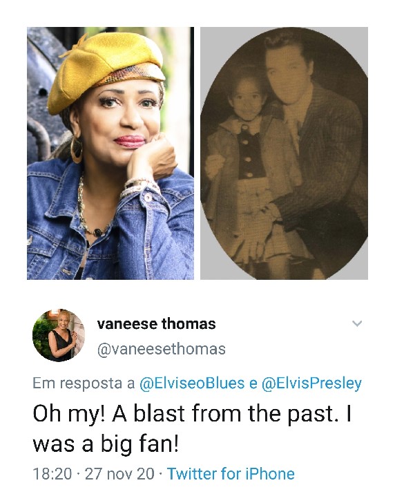 Vaneese Thomas (cantora americana de rhythm-and-blues, jazz e soul blues, e filha do grande Rufus Thomas) conheceu Elvis pessoalmente na noite de sexta-feira, 7 de dezembro de 1956, quando tinha 4 anos de idade. O encontro aconteceu nos bastidores do Ellis Auditorium, em Memphis, durante o show beneficente “Goodwill Revue” (em prol da Goodwill Fund - organização sem fins lucrativos para preservação da cultura negra, que originalmente fornecia transporte escolar para crianças negras deficientes e depois incluiu bolsas de estudo para faculdades e auxilio a habitação suplementar de baixo custo) patrocinado pela estação de rádio WDIA (primeira estação de rádio negra dos EUA, fundada em 1947). O show contou com apresentações de B.B. King, Ray Charles e seu pai Rufus Thomas (compositor, dançarino, humorista, cantor de rhythm-and-blues, funk, soul, blues e disc-jockey da WDIA), além de uma breve aparição surpresa de Elvis, a convite do próprio Rufus (Elvis era ouvinte assíduo da WDIA desde garoto).